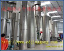 在干燥塔顶部导入热风,同时将料液送至塔顶部,通过雾化器喷成雾状液滴,这些液滴群的表面积很大,与高温热风接触后水分迅速蒸发,在极短的时间内便成为干燥产品,从干燥塔底排除热风与液滴接触后温度显著降低,湿度增大,它作为废气由排风机抽出,废气中夹带的微粒用分离装置回收。
